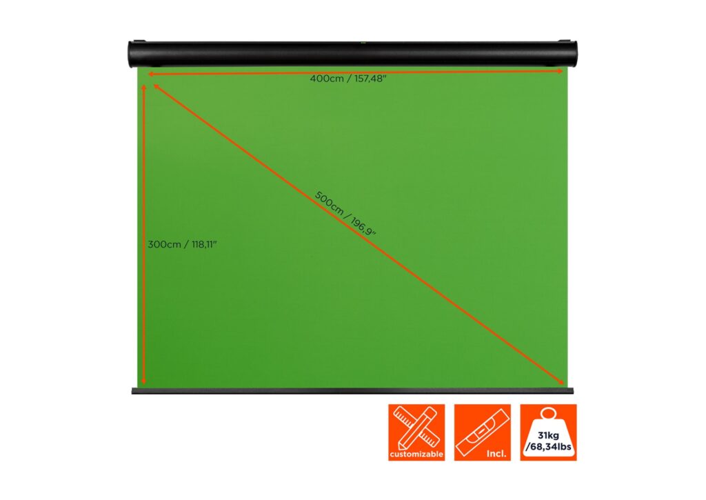 Écran à fond vert motorisé Chroma Key 400 x 300 cm
