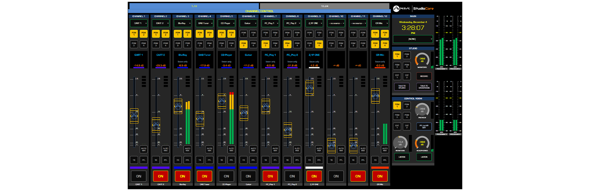 Exploitez pleinement le potentiel des consoles Axia StudioCore et Axia iQ grâce à la licence de mise à niveau optionnelle Core Soft. Core Soft permet le contrôle à distance de StudioCore via un navigateur HTML5, lui permettant de fonctionner comme une console de mixage autonome (avec ou sans surface de contrôle matérielle) et offrant un monitoring intégré du signal de retour de la régie. Core Soft peut également être utilisé pour contrôler à distance une surface iQ connectée.