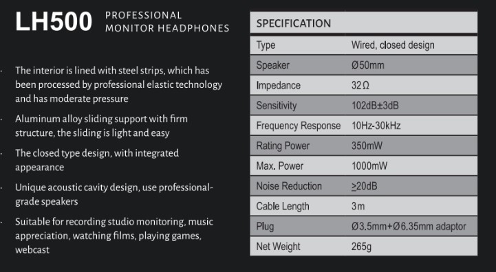 LH500 LinearSound Casque Audio Pro Fermé